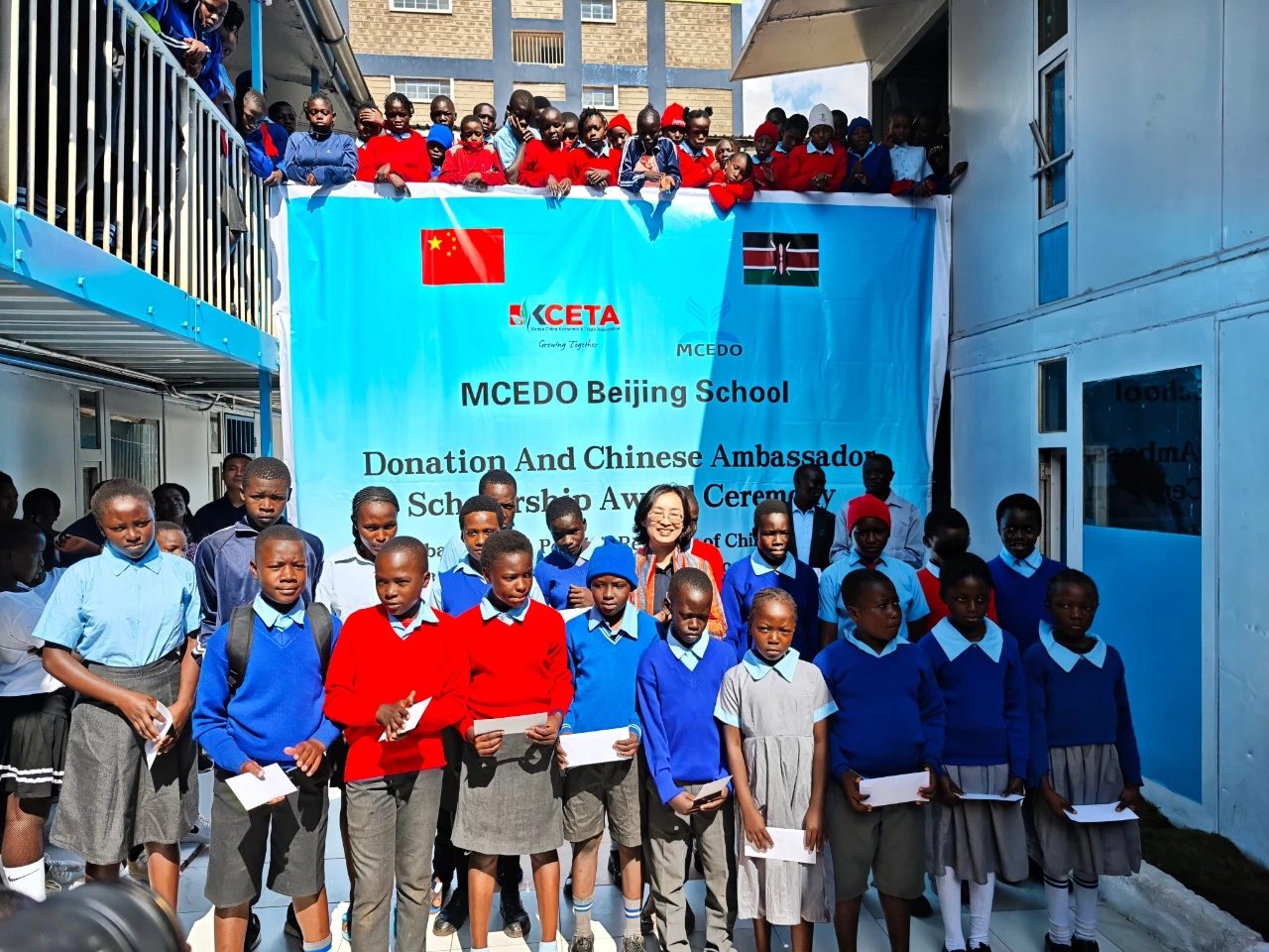 人民网内罗毕11月26日电(记者黄炜鑫)肯尼亚姆赛多北京学校捐赠暨中国大使奖学金发放仪式25日在内罗毕举行。中国驻肯尼亚大使郭海燕、肯中经贸协会会长俞晓东、中资企业代表及学校师生共600余人出席。
