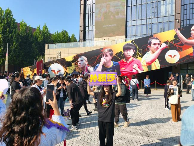 入口处设立的巨幅赛事背板成为焦点,众多球迷驻足合影打卡,记录这一乒乓盛宴的开幕时刻。笑容洋溢的脸庞与写满祝福的背板相映成趣,构成一道亮丽的风景线。这项顶级赛事的回归点燃了球迷的热情,也再次彰显了乒乓球运动在中国的深厚底蕴与无限活力。